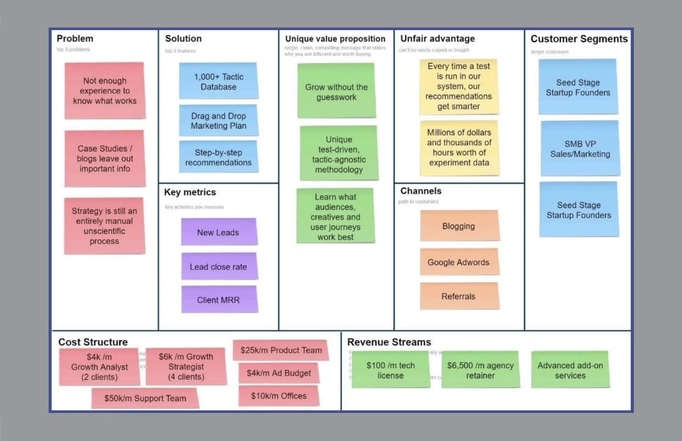 So, if you run your marketing at a shoestring budget, the lean canvas model is a great solution.