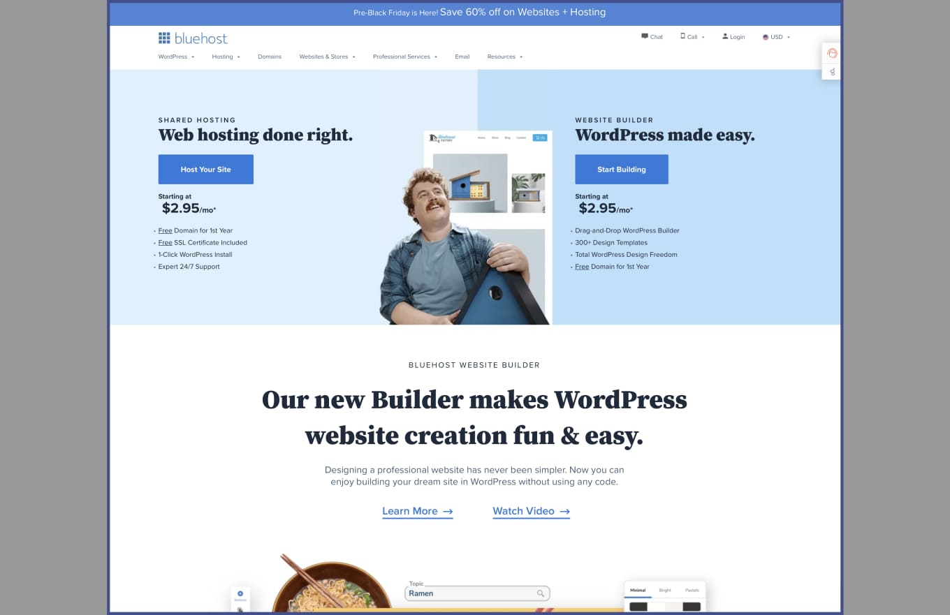 | Bluehost | Multi-platform | 19.99-59.99$ | Not highly scalable | 688ms | User-friendly control panel |