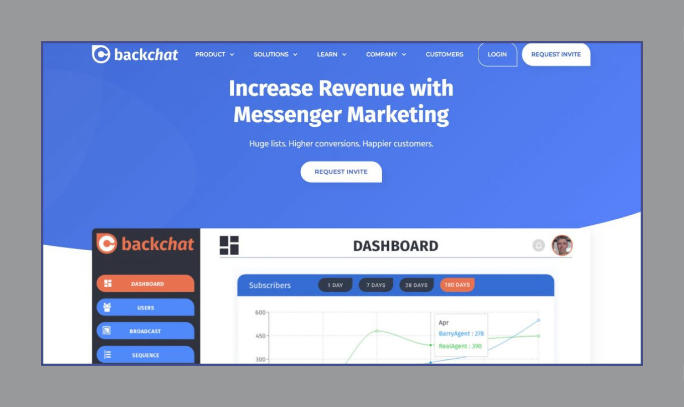 Our solution is BackChat marketing automation SaaS for Facebook messenger.