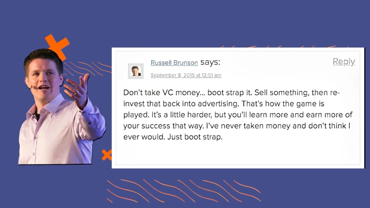 ClickFunnels founder Russel Bruson started his entrepreneurial career with a tiny software called ZipBrander, which he built with a few hundred dollars by hiring a remote freelancer. Every Russel’s software product was bootstrapped and grown by reinvesting. Including ClickFunnels…