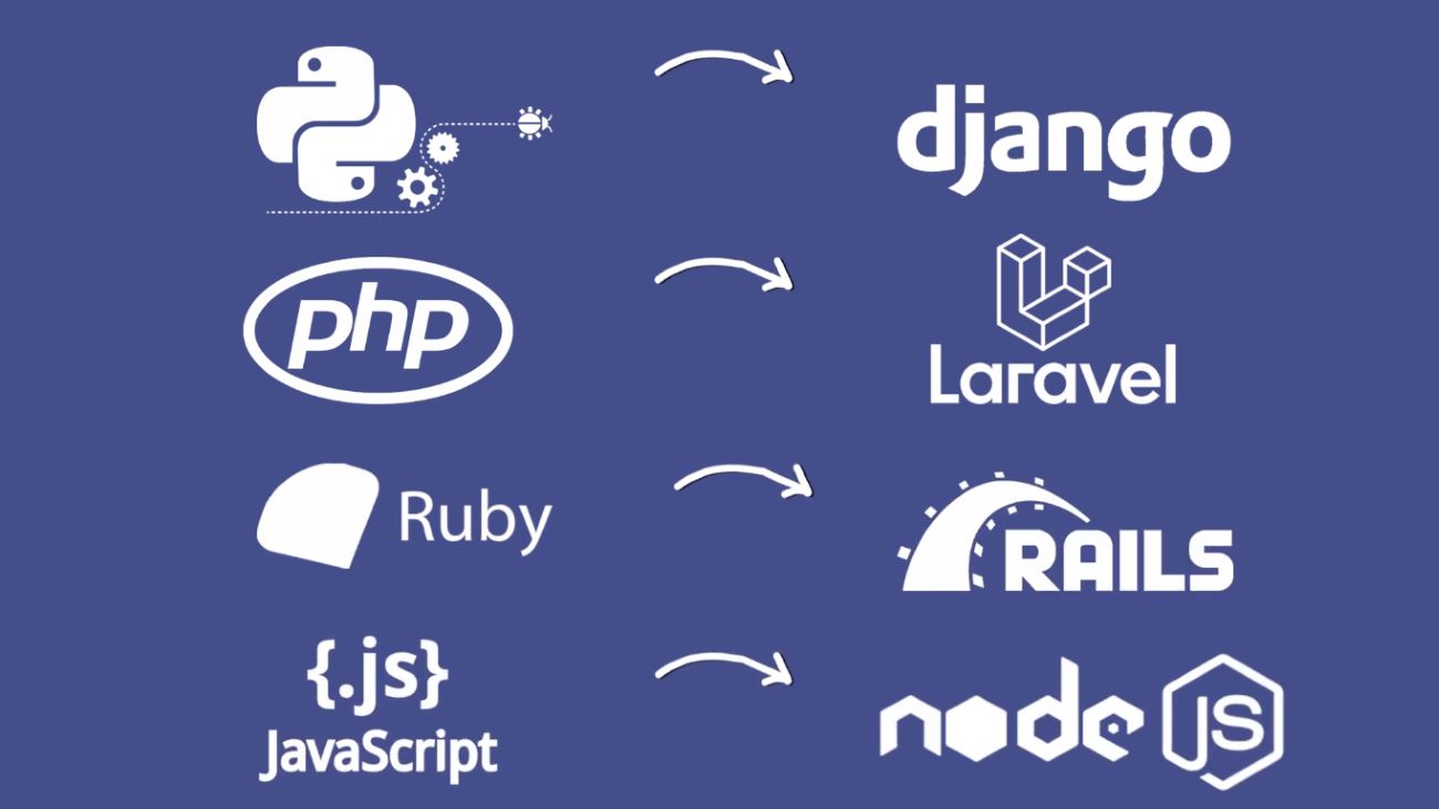 For Python, we have frameworks like Django, for PHP – Laravel, for Ruby – Rails and for Javascript – Node.js.
