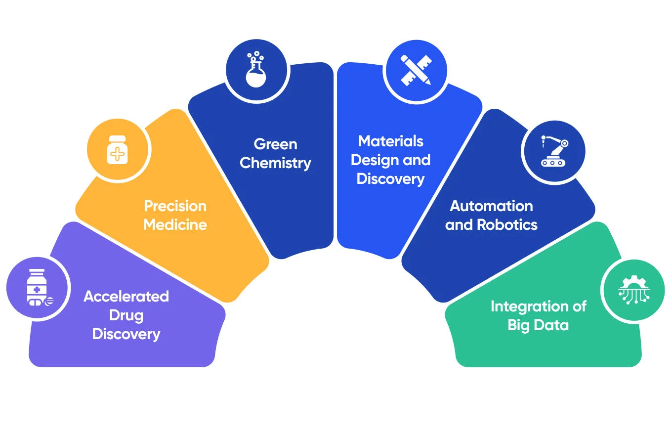 - Predictive Analysis: With the use of AI algorithms, chemists can now analyze complex chemical datasets, identify patterns, and make predictions about chemical reactions, properties, and behavior. It enables researchers to make informed decisions and optimize experimental conditions.