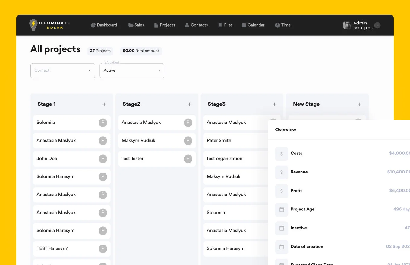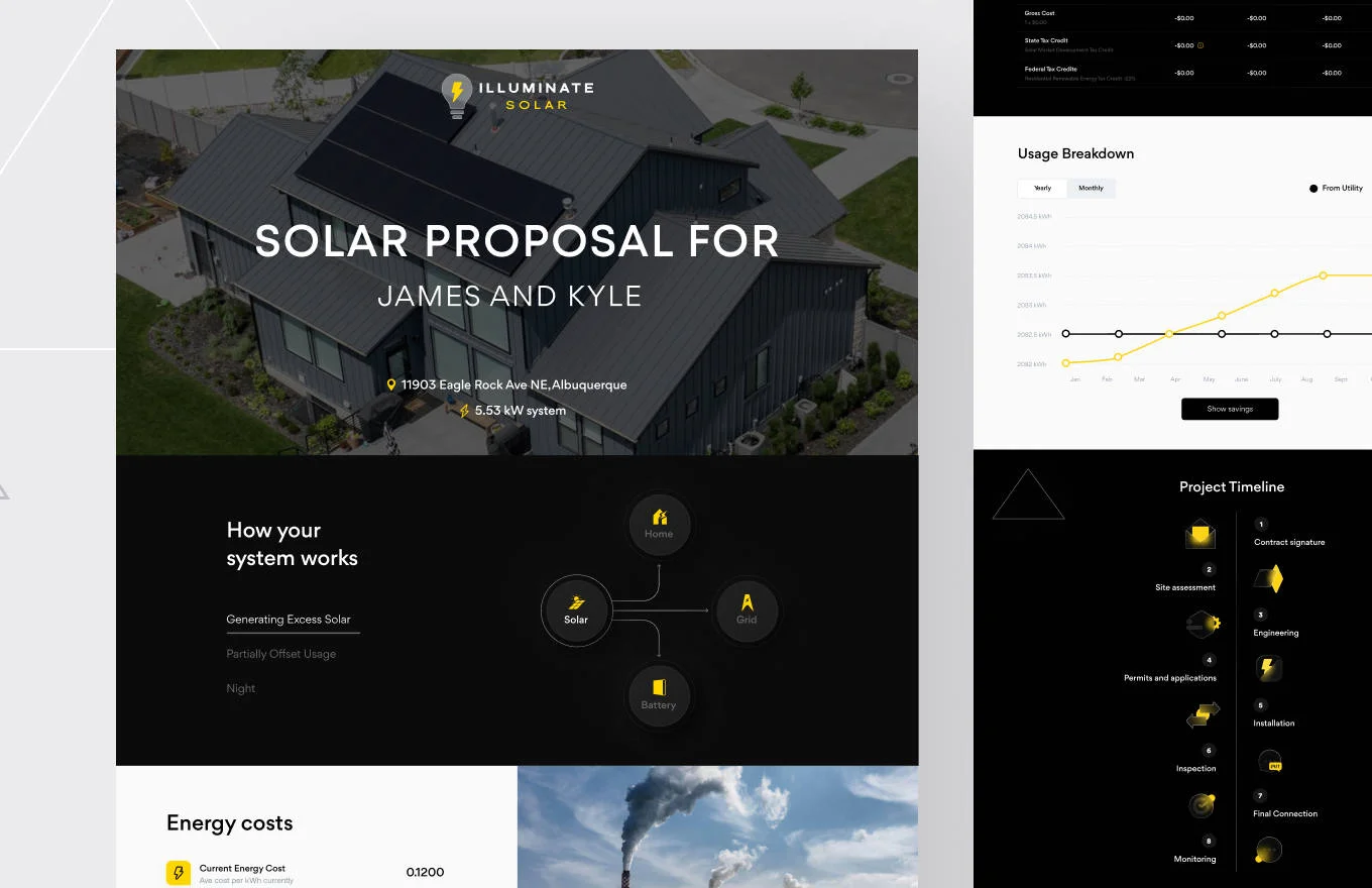 Solar CRM allows solar companies to save time between lead generation and proposal submission. It allows clients to create proposals by themselves, and employees to cover more proposals in a shorter time period. As a result, solar companies save money on human resources and are able to work with more clients simultaneously. Moreover, solar CRMs offer a better user experience and allow to communicate with clients constantly.