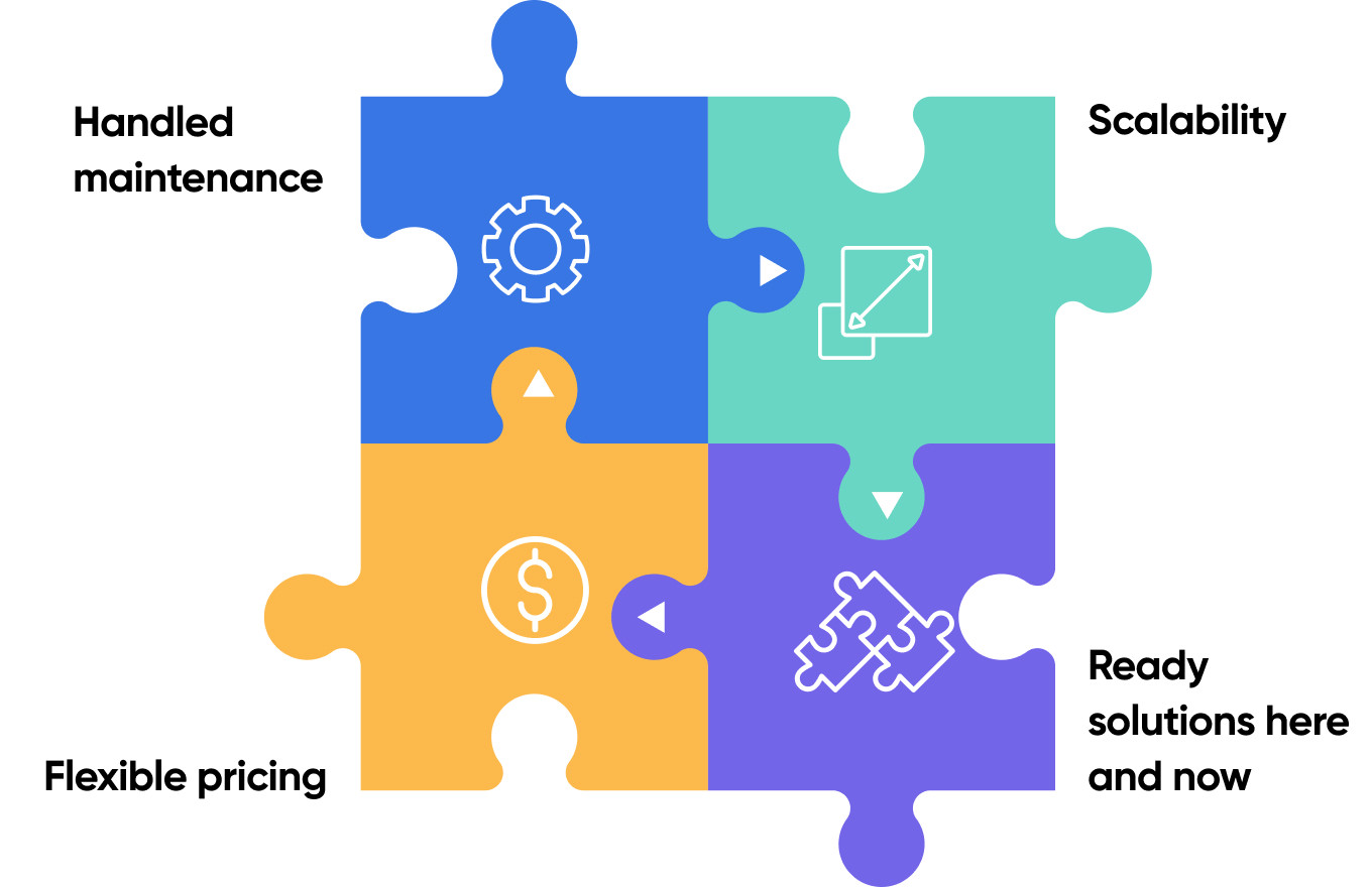 - Ready solutions here and now. Most business customers donât have too much time to develop a software product. Meanwhile, while subscribing to a SaaS platform, they receive a ready solution instantly.