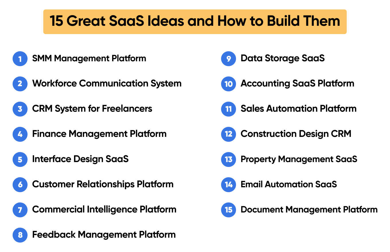 Mind that this list includes both heavyweight SaaS business ideas and promising micro-SaaS opportunities.