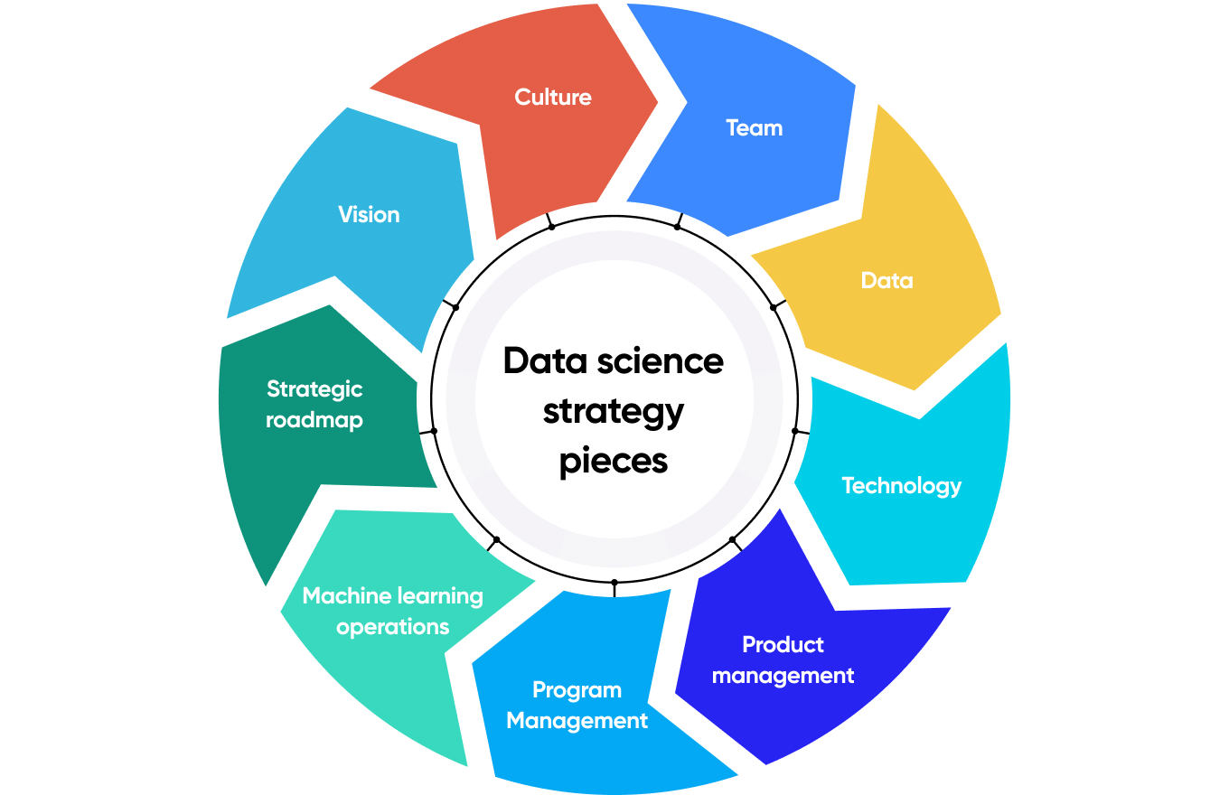 Once you define a measurable goal and identify potential data sources, it’s time to start building your data science strategy. It can consist of various pieces, but let’s focus on the 9 main elements.