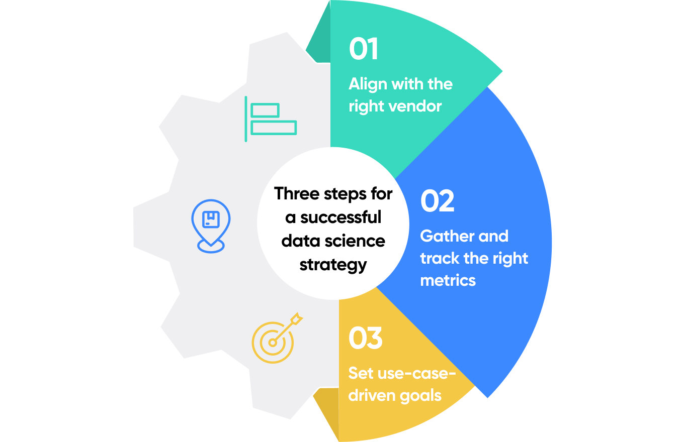 Building a successful data science strategy is not easy, and you don’t want to work on it alone. It’s always a great idea to find a vendor to partner with, someone who will support you and your team and help you build a successful strategy for your business.