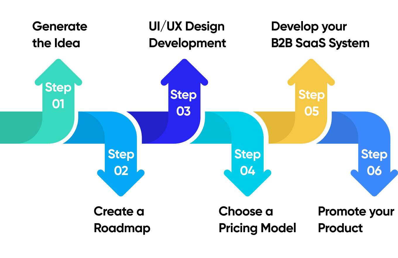 First, you should come up with a good idea. Then, create a roadmap for B2B SaaS development. Further steps involve design and subscription model planning. After that, you can develop the platform and, then, promote it with the best marketing practices.