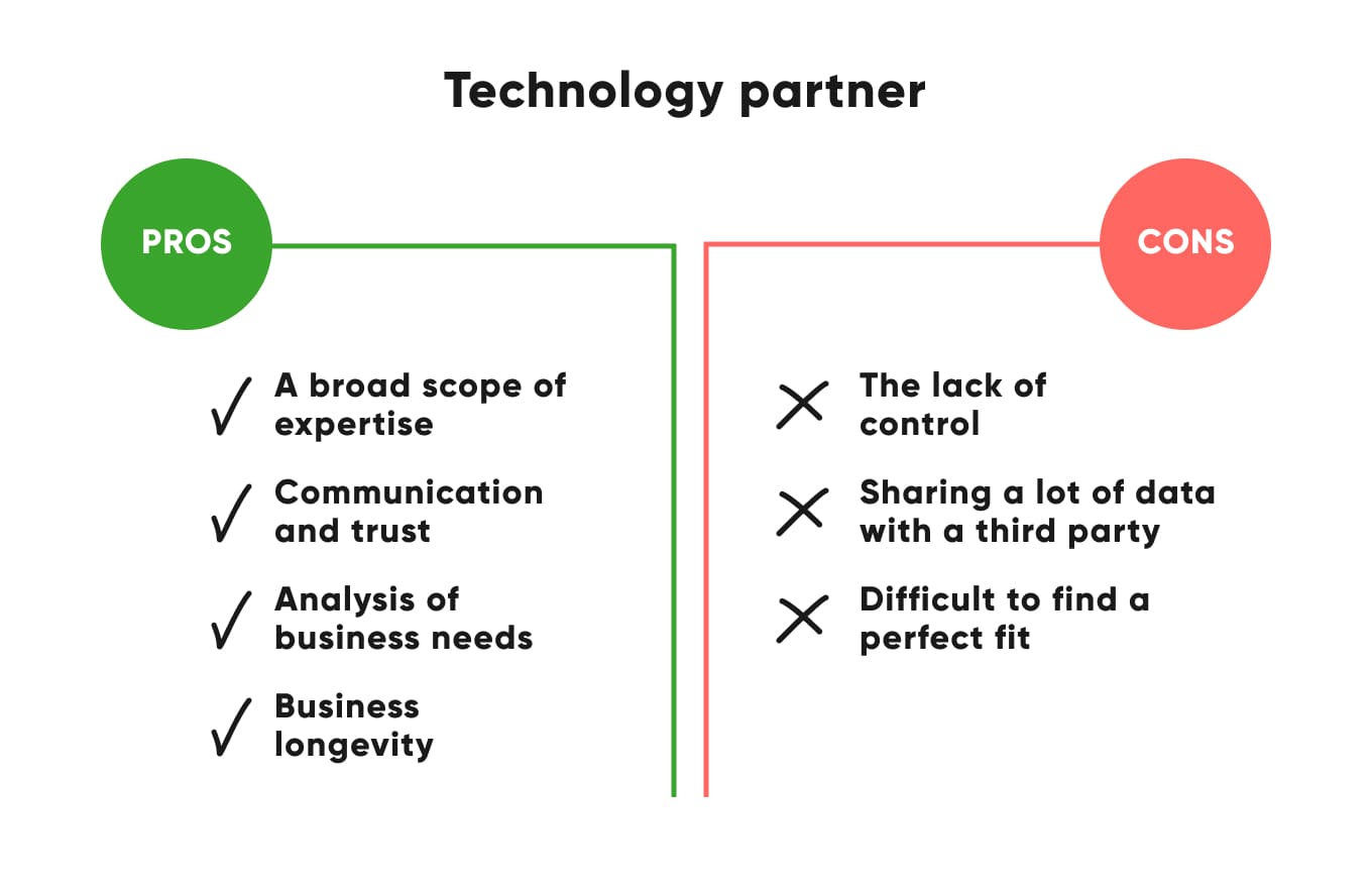 Do you have no prior knowledge of working with development teams and won’t be able to manage their work? In this case, you should consider technology partnership and not worry about management at all because everything will be done by their team.