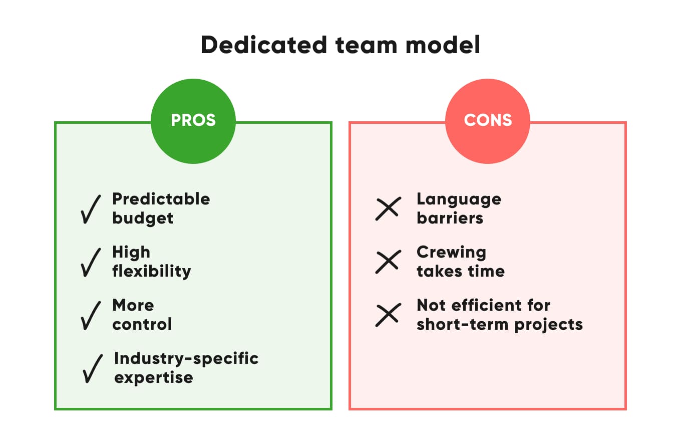 Usually, the dedicated team model allows clients to predict their expenses and cust costs by hiring outsourcing agencies to develop their software. Outsourcing is not always a cheaper option, but it does allow you to control your costs and not spend money on office space, hiring process, benefits, and equipment.