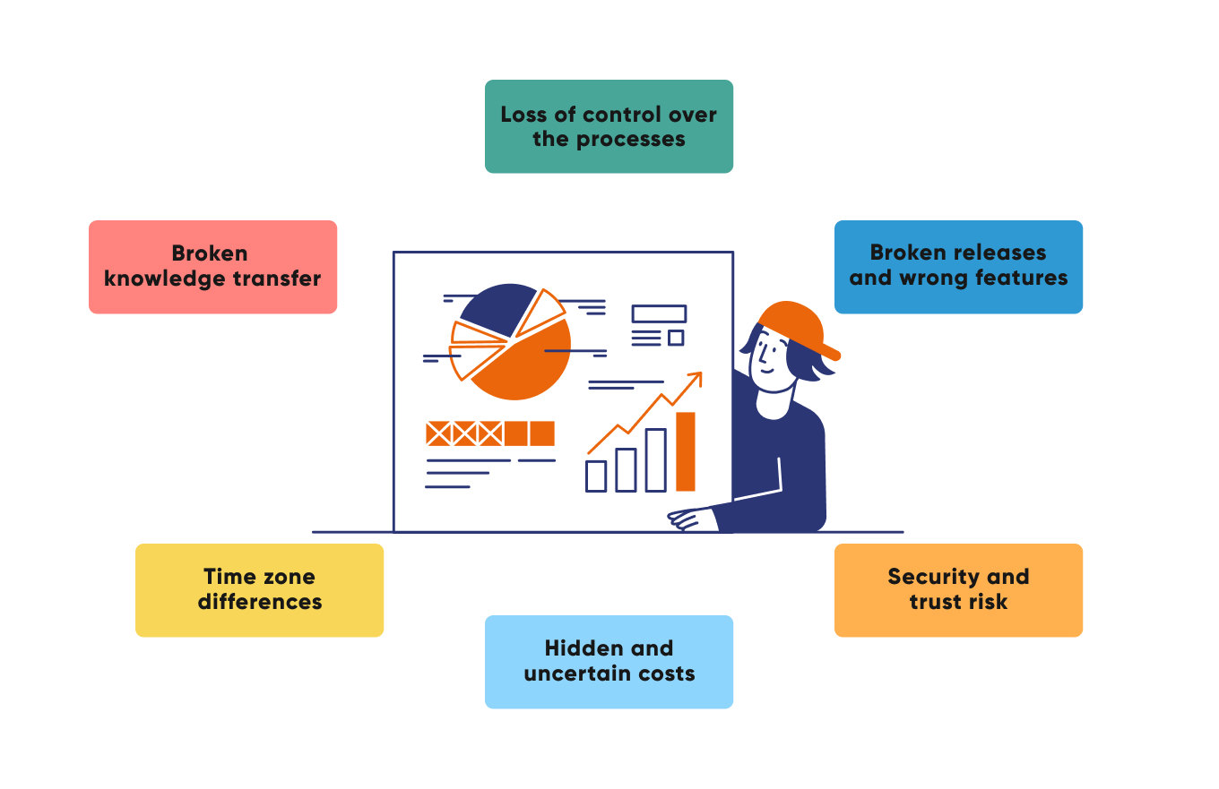 Outsourcing isn’t without its risks and horror stories, and you’ve definitely heard some of them from your colleagues or friends. Indeed, there have been many reports of failures due to communication barriers, hidden costs, privacy, and security issues. Such risks make people think twice before delegating work to external teams.