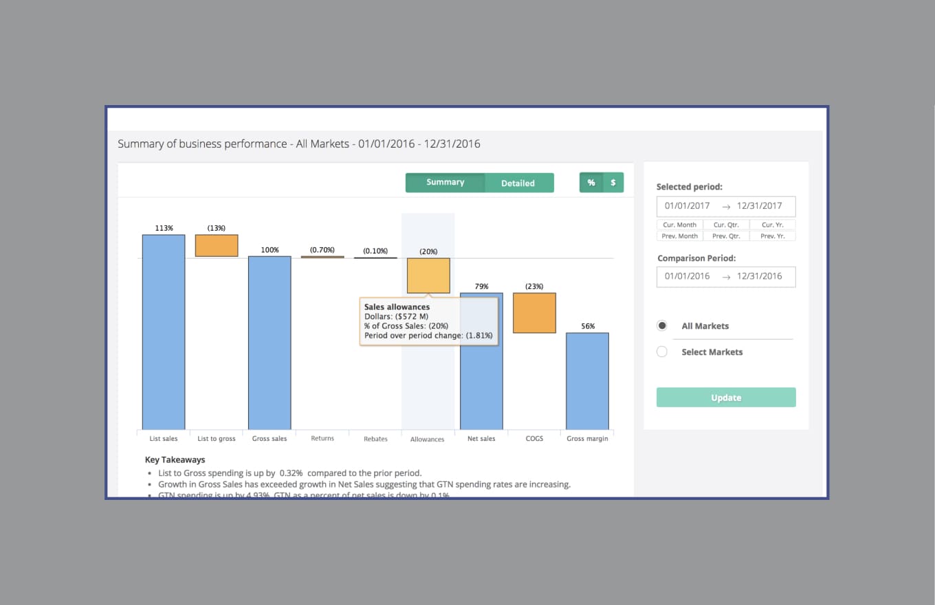 It is the fastest, the most advanced, and the most user-friendly commercial intelligence platform designed to enable fast-moving of consumer good (FMCG) manufacturers to reduce enterprise-wide price leakages, optimize trade spending, and maximize value capture by charging every channel partner prices that are uniquely right for them.