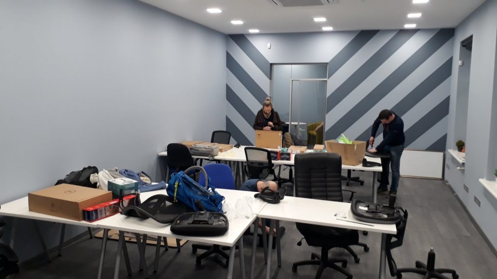 On March 25, we moved to a new office in the city downtown, and it was our first day at a new location.