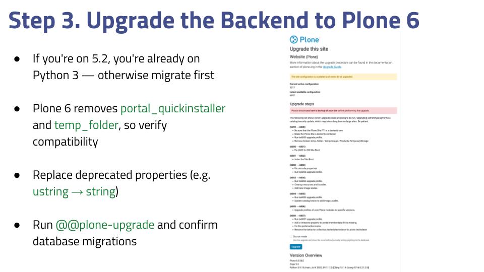 Let’s walk through the real, low-risk upgrade path to Plone 6 — the biggest release Plone has seen in years.